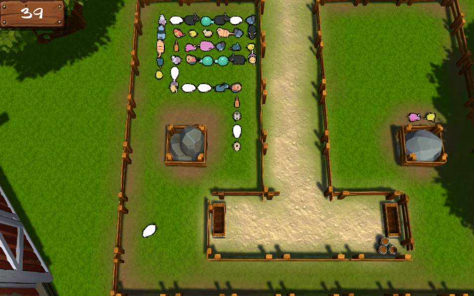 The other part of the movement was to have all the trailing segments to follow the player character. Each segment saves their move-from and move-to positions and lerps between them. When the head segment (this is the player controlled one) reaches their move-to goal (this matches each grid cell where they can change direction) the new position is calculated based on if the player changes direction or not. Then we iterate through from tail segment to the head and copy the move-from/move-to positions down from head to tail then we apply the new position to the head segment.